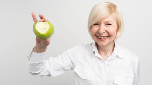 Las minidentaduras postizas sobre implantes le permiten comer los alimentos que le gustan.